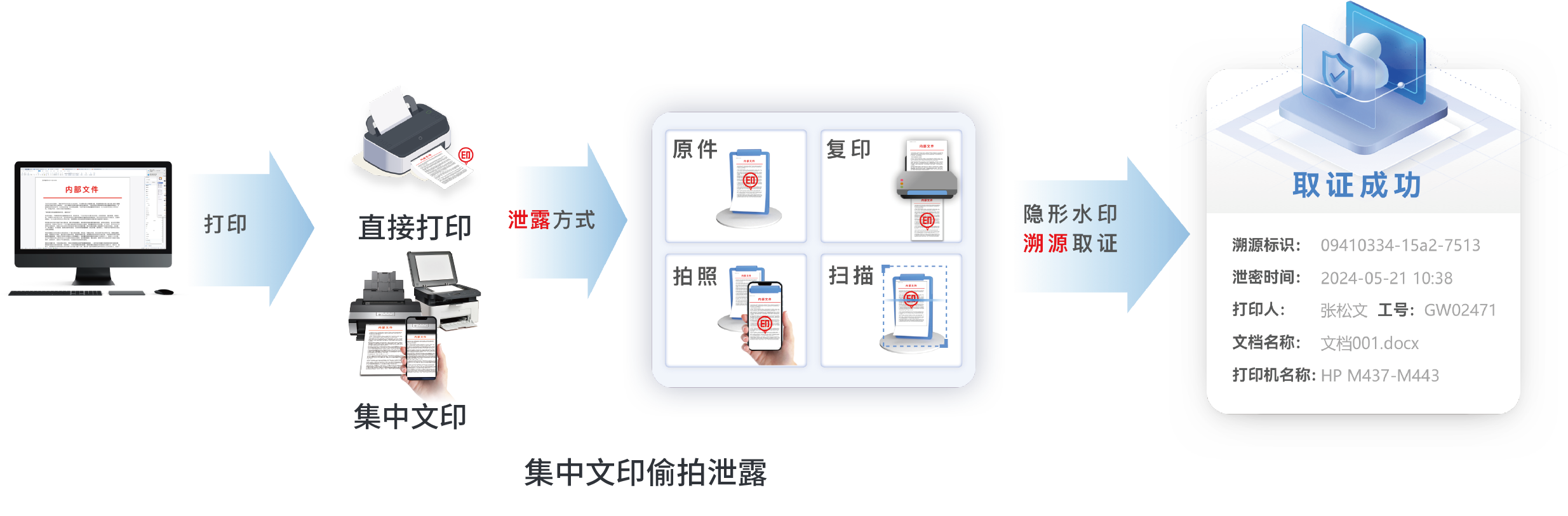 办公区发生人员偷拍集中文印/终端打印的敏感纸质文件事件后,解决无法追溯打印时间与终端责任人信息痛点。