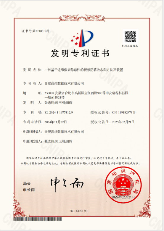 视频也能“验真”?高维数据获边缘隐藏防篡改专利,为每帧内容穿上“隐形防护服”(第2期)