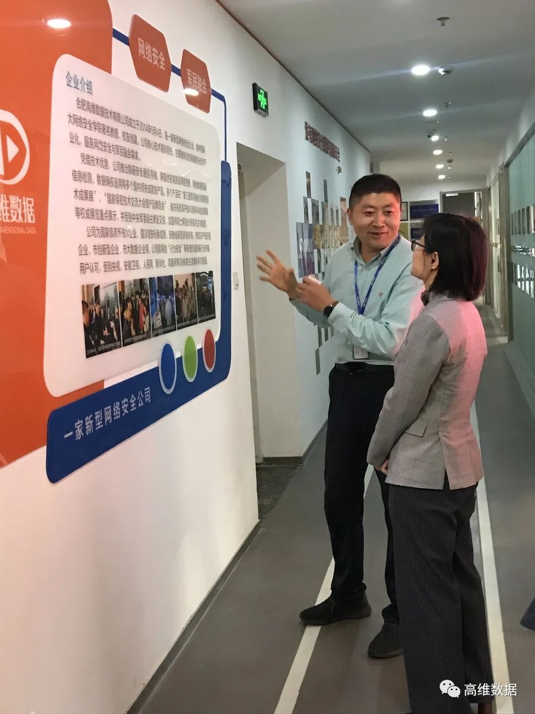 高维数据作为合肥本土培育的新型网络安全公司,总经理田辉首先感谢各级部门给予公司的支持和帮助,并向吴璀平秘书长一行汇报了公司坚持的信息隐藏技术及发展情况,介绍了公司在技术研究、产品研发、市场应用等情况。