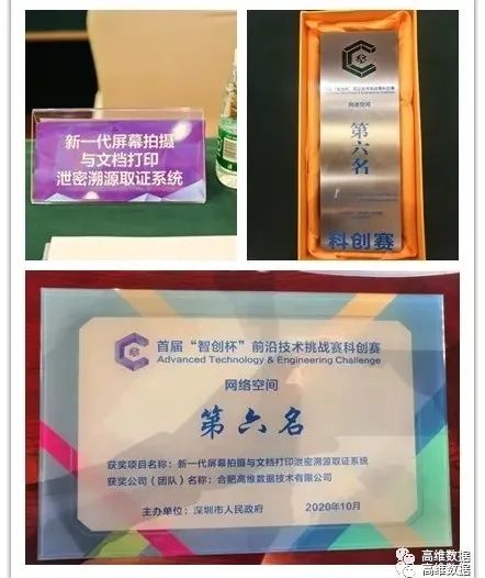 10月30日,由深圳市人民政府主办,深圳清华大学研究院、力合科创集团承办的首届“智创杯”前沿技术挑战赛上。高维数据“新一代屏幕拍摄与文档打印泄密溯源取证系统”项目获得“网络空间组”第六名的佳绩!比赛面向全球征集的1584个项目经过国内5大赛区和海外2大赛区多轮赛次比拼,28个项目获大赛奖励。