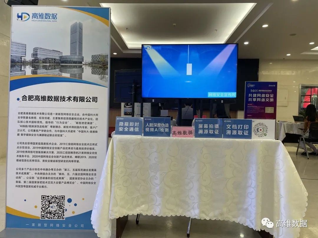 10月11日,以“网络安全为人民,网络安全靠人民”为主题的2021网络安全宣传周在西安市启动。在安徽省、合肥市网络安全宣传周上,高维数据受邀携“屏幕拍摄溯源取证系统”、“文档打印溯源取证系统”等公司核心产品参展。