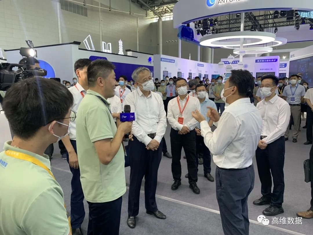 启动仪式后,中央网信办副主任赵泽良,省委常委、合肥市委书记虞爱华,省委网信办主任张杰华等领导一行莅临高维数据展位参观。总经理田辉向领导一行汇报了公司新产品、新技术!