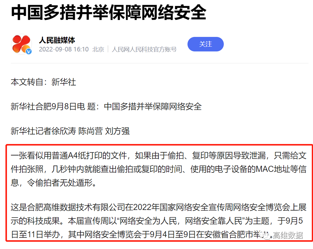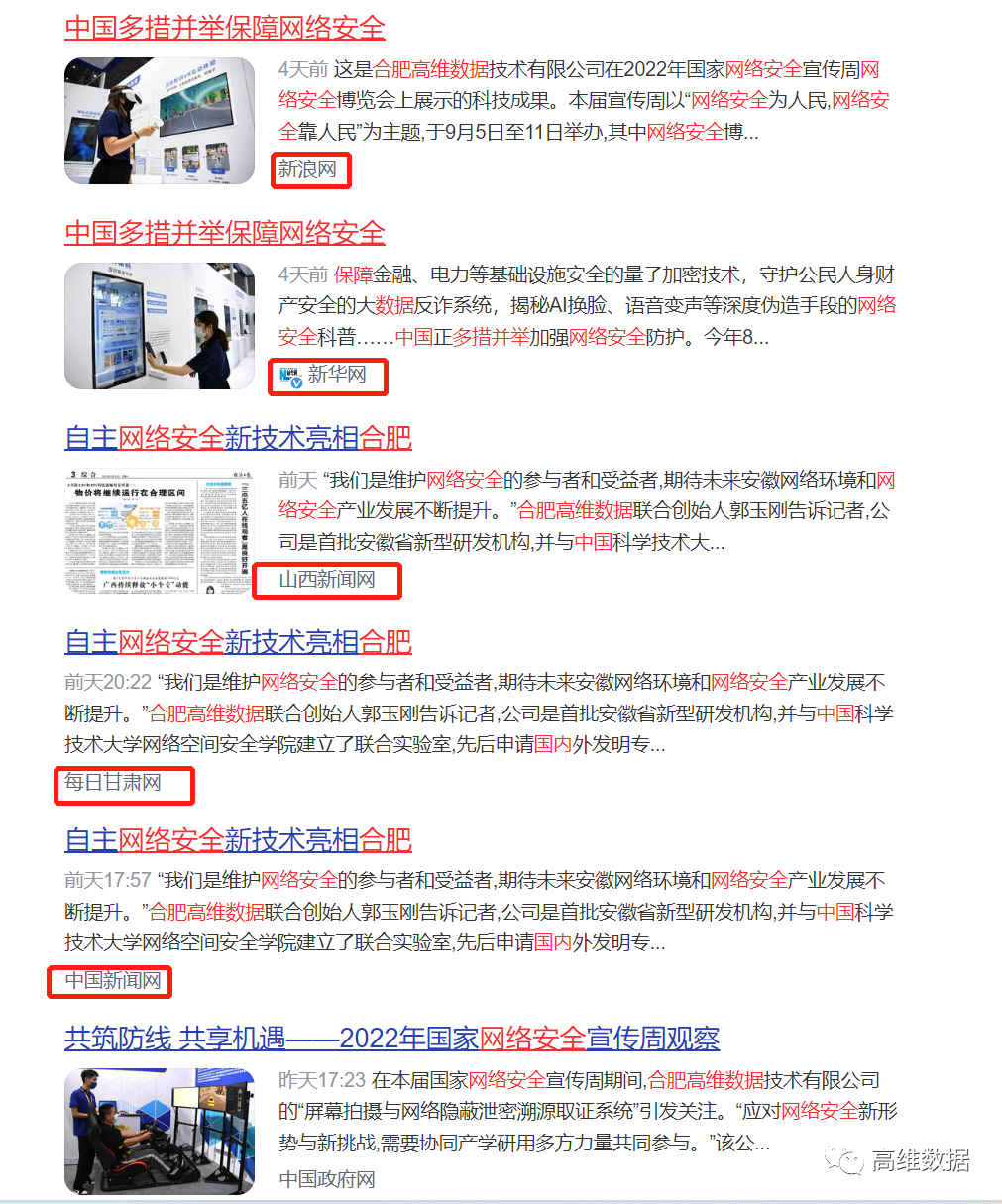 回顾2022网安周| 高维数据 受多家中央、地方主流媒体广泛关注、报道!