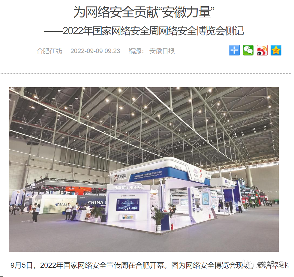 2022年国家网络安全宣传周网络安全博览会于9月3日—9日在合肥滨湖国际会展中心综合馆举办。