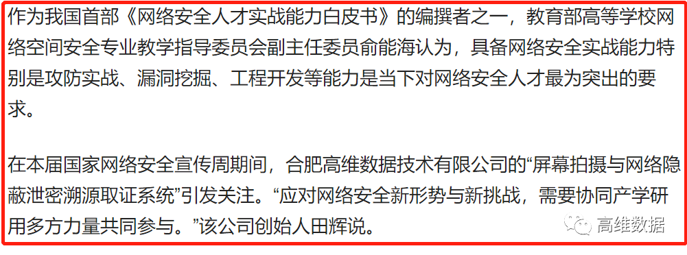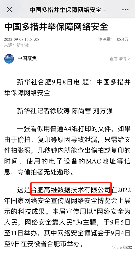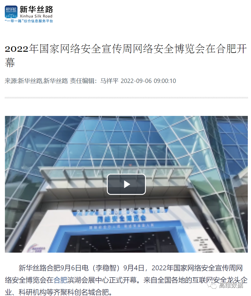 【新华丝路发布文章和视频,关注高维数据,关注合肥网络安全产业发展】