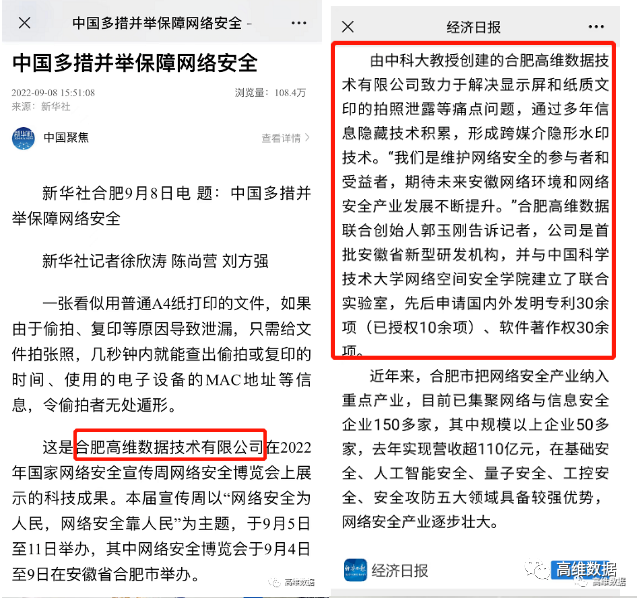 3►作为本土培育的新型数据安全公司,凭借创新产品和理念,受到媒体广泛关注,多家主流中央主流媒体,地方媒体、大型网络媒体等众多媒体聚焦报道、关注高维数据。