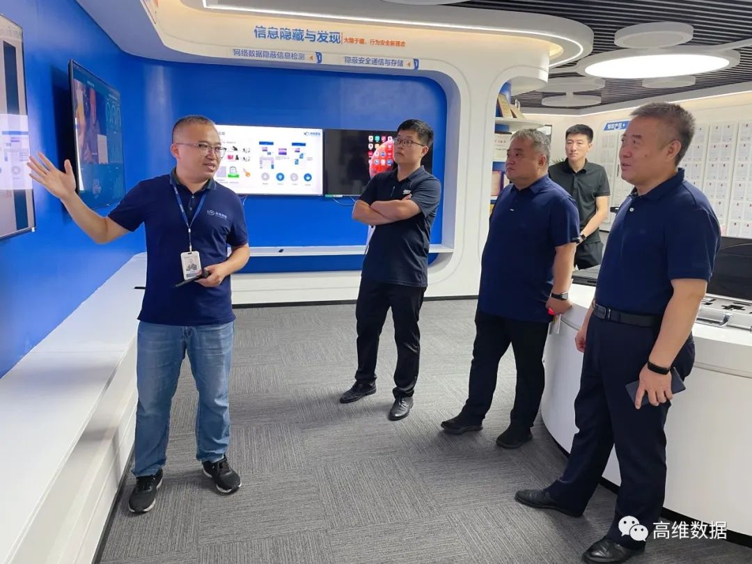 7月14日上午,滨州市委宣传部副部长、市委网信办主任马广才,市委网信办副主任宋磊一行莅临高维数据参观调研,合肥市委网信办副主任夏海军陪同调研,公司CTO郭玉刚热情接待!
