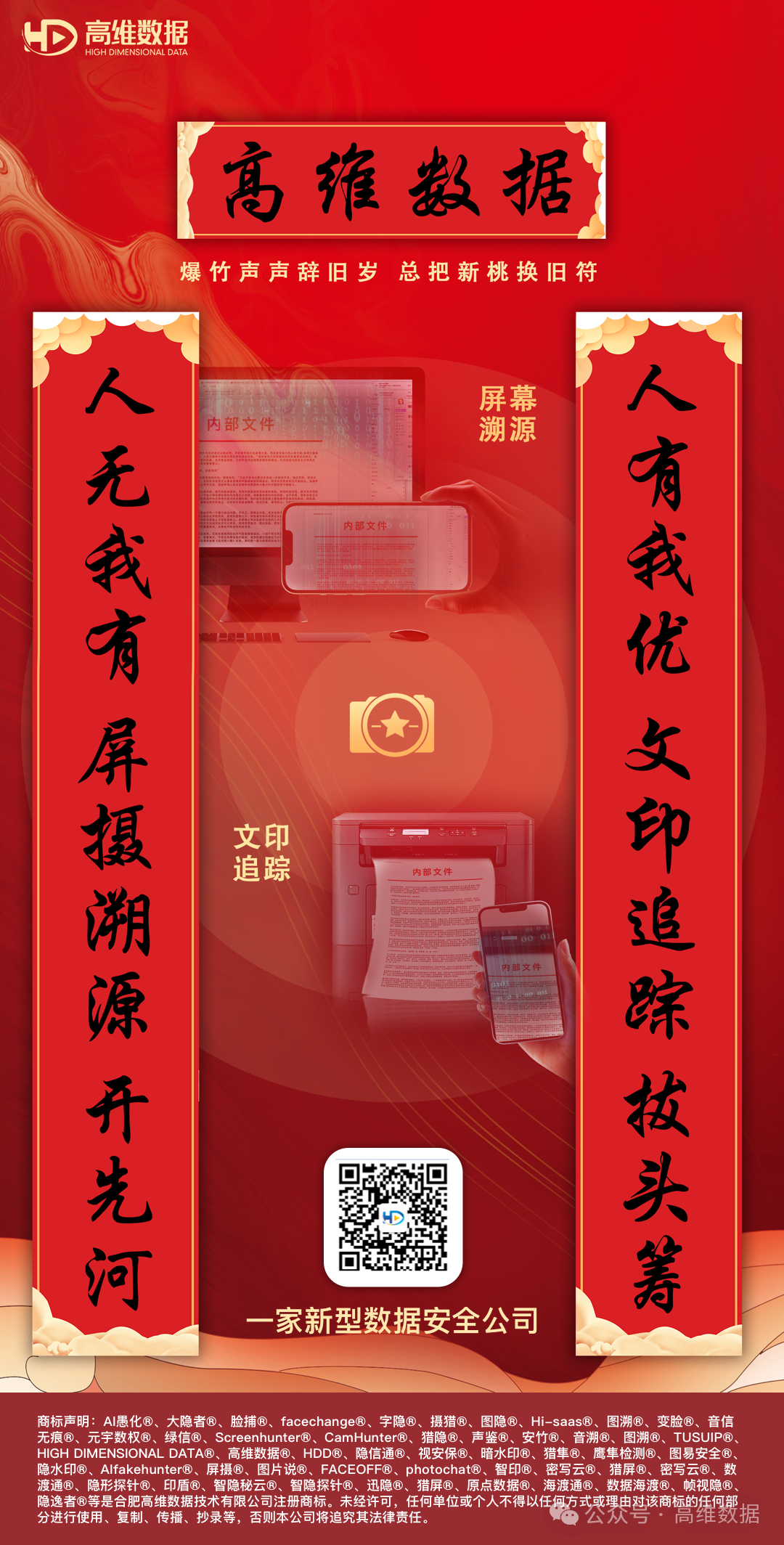 上联:公司数据泄密溯源产品,帮助客户解决结构化、非结构化、拍摄等数据的溯源难题,像法官一样公正严谨判别!