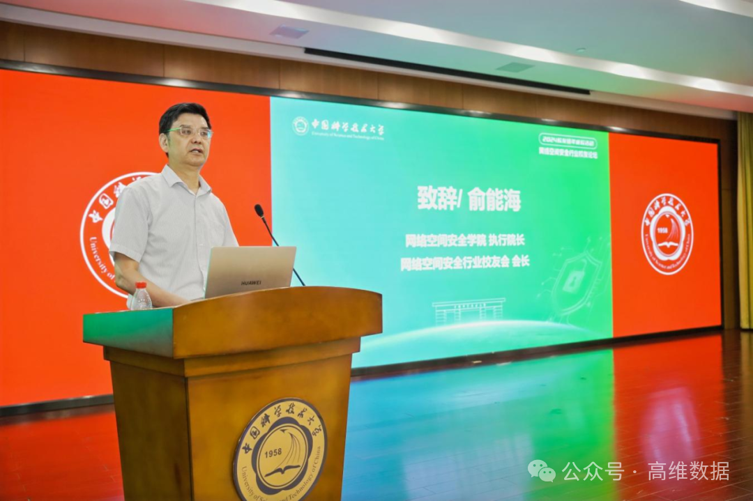 网络空间安全学院执行院长、网络空间安全行业校友会会长俞能海致辞,本次活动的目的是加强校友之间的交流,探讨未来网络空间安全前沿技术和发展趋势。中国科大一直以来非常重视网络空间安全领域的研究和人才培养,并取得了显著的成绩。感谢校友们对母校的关心和支持,期待未来大家共同发扬科大精神,努力发挥专业优势,为网络安全事业做出更大的贡献。