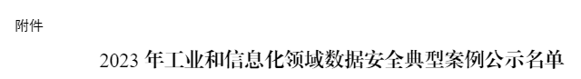 值得一提的是,2023年工信部组织开展了工业和信息化领域数据安全典型案例遴选工作,面向工业领域征集了“四方向、十类型”数据安全典型案例,经申报推荐、形式审查、专业初审、专家评审和网上公示,该解决方案成功入选!