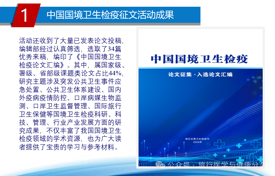 另外,会议现场还发布了中国国境卫生检疫征文活动成果,征文活动代表青岛海关保健中心李西峰主任做了 “提升口岸技术支撑能力,守护国门安全”的主题发言。