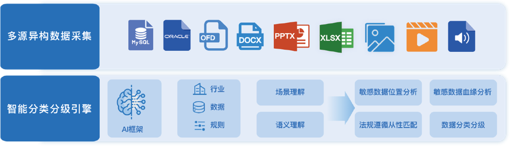 提供规则模板引擎和AI大模型双重分类分级能力,分类识别准确性远高于常规方法。