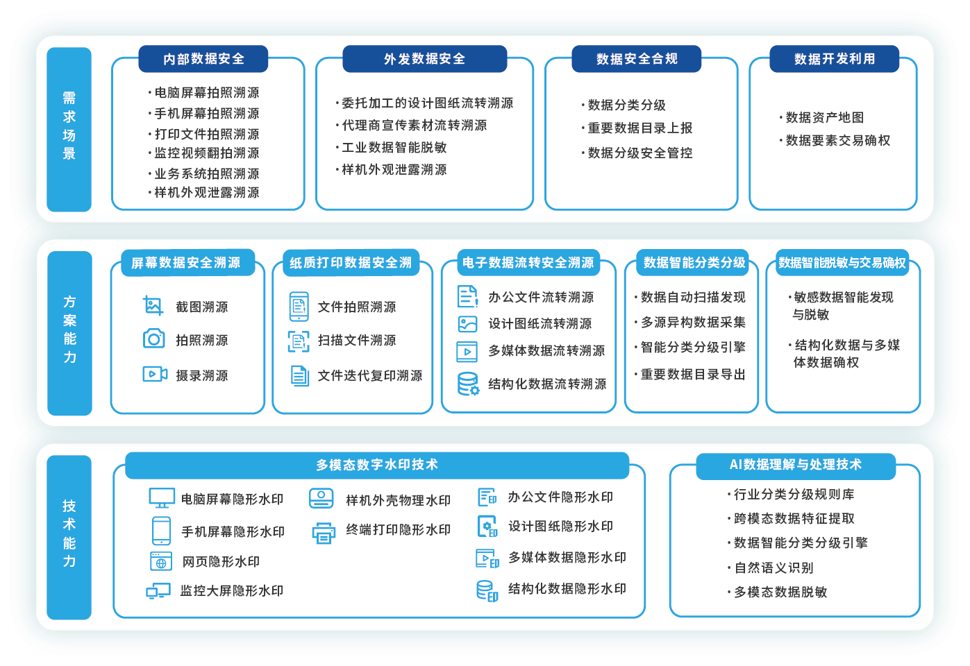通过多模态隐形水印技术,在外发给委托生产的合作伙伴、代理商的电子数据中嵌入带有身份标识的隐形水印,一旦数据违规扩散,通过泄密样本可精准定位数据泄露源头。